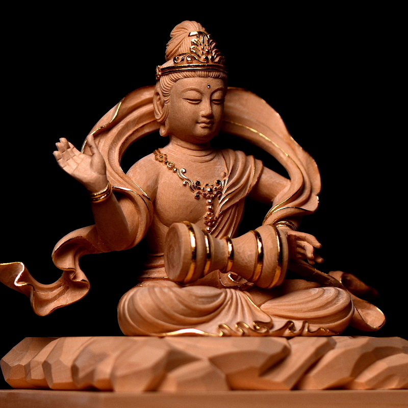 弁財天像 総高160cm 米桧 白木素地金線 玉眼