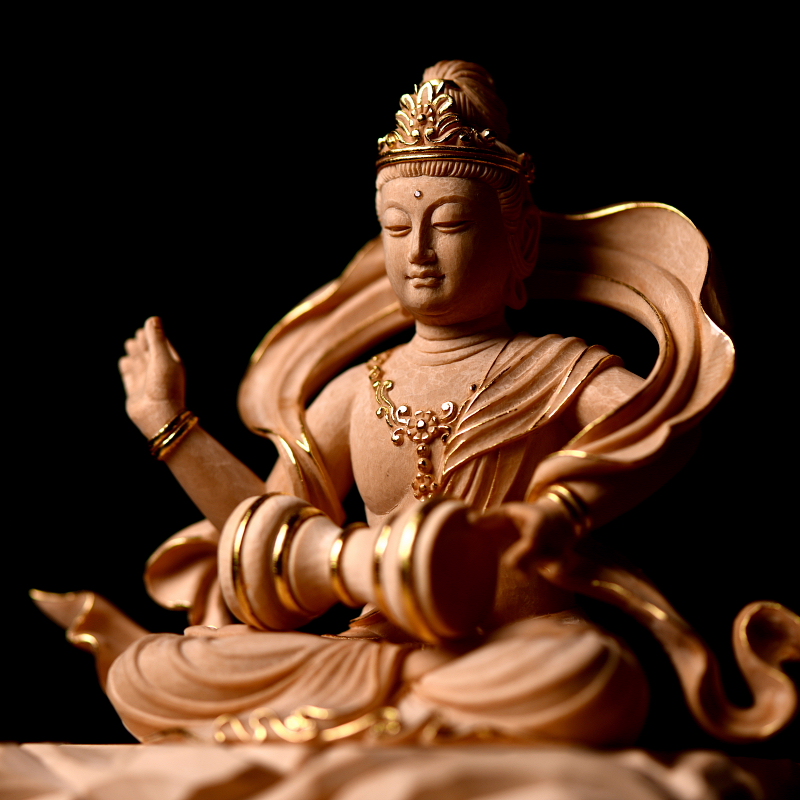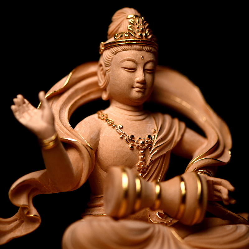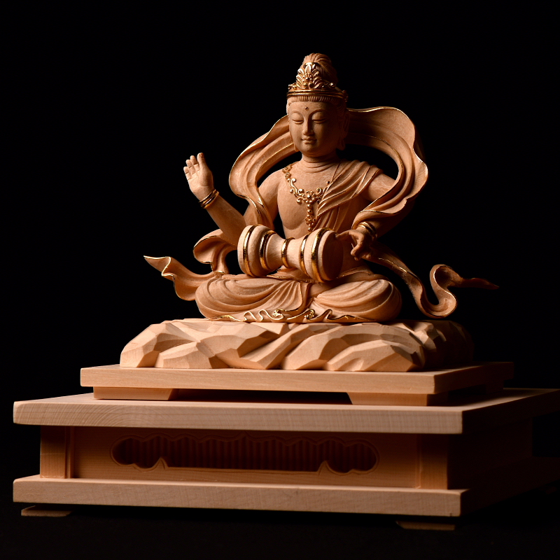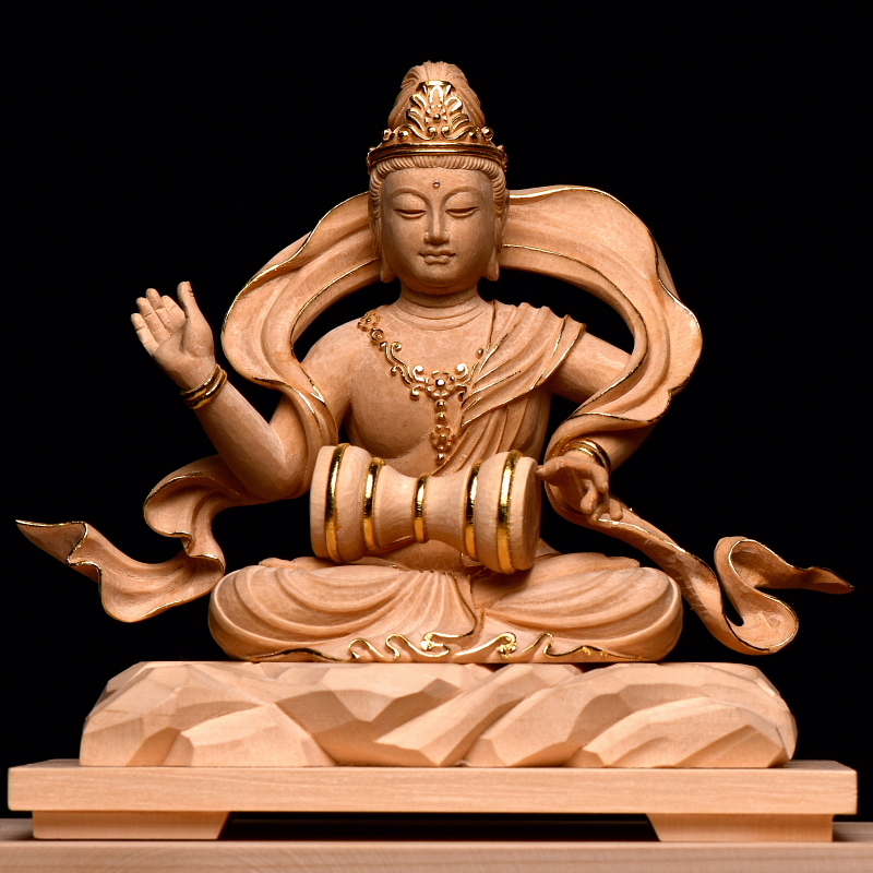 緊那羅坐像 総高16cm 米桧 白木素地 金線